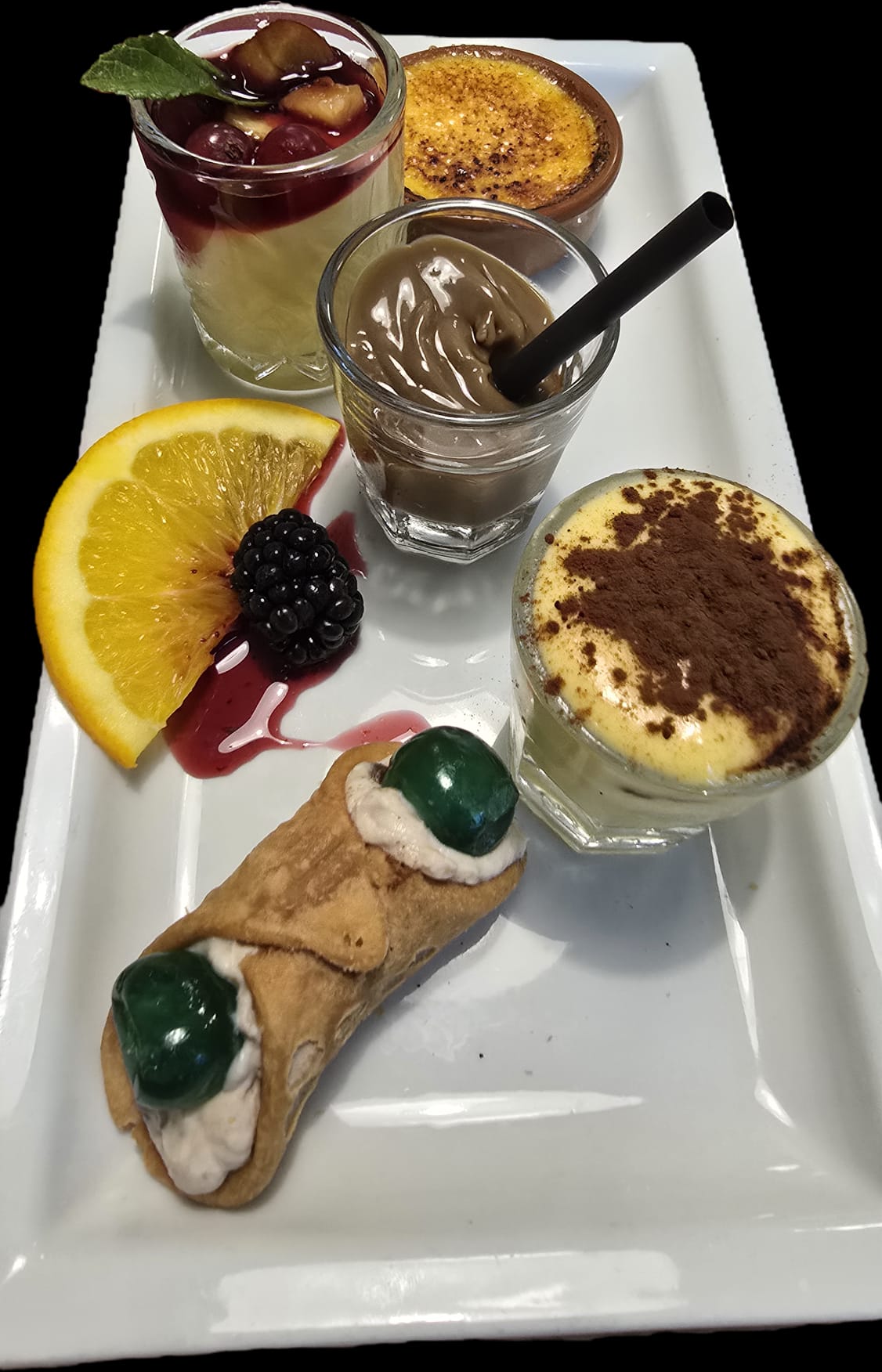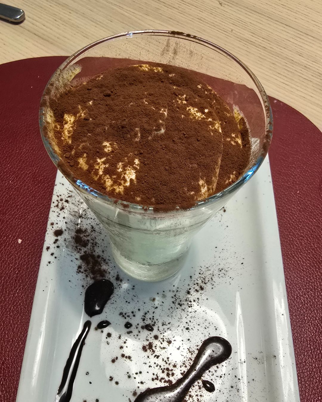 A timeless classic of Italian tradition, revisited with care in our restaurant. Soft layers of savoiardi soaked in espresso, alternating with a velvety cream of fresh and delicate mascarpone, all served in a cup to enhance each layer. An enveloping and delicious dessert, perfect to end the meal with a touch of sweetness and refinement.