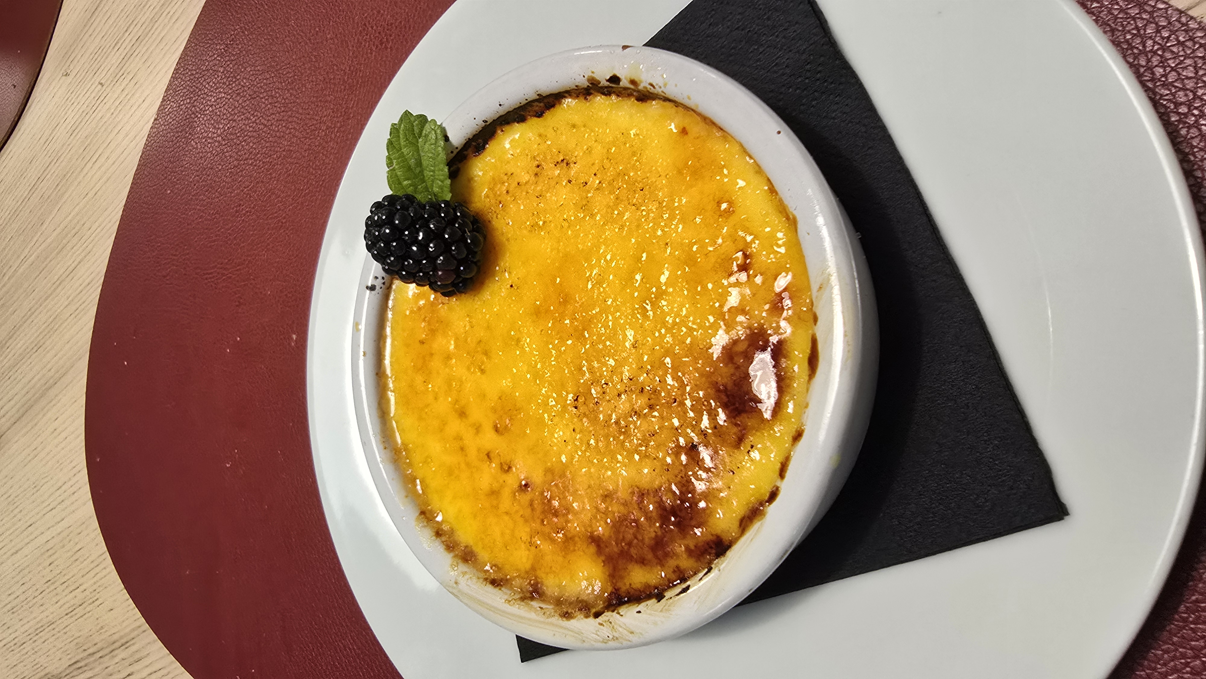 Delicate cream with egg yolk, fresh milk and vanilla, flavored with lemon peel and cinnamon, topped by a thin layer of caramelized sugar, for a perfect contrast between softness and crunchiness. A classic Spanish dessert with a refined taste, ideal to end your meal in sweetness.