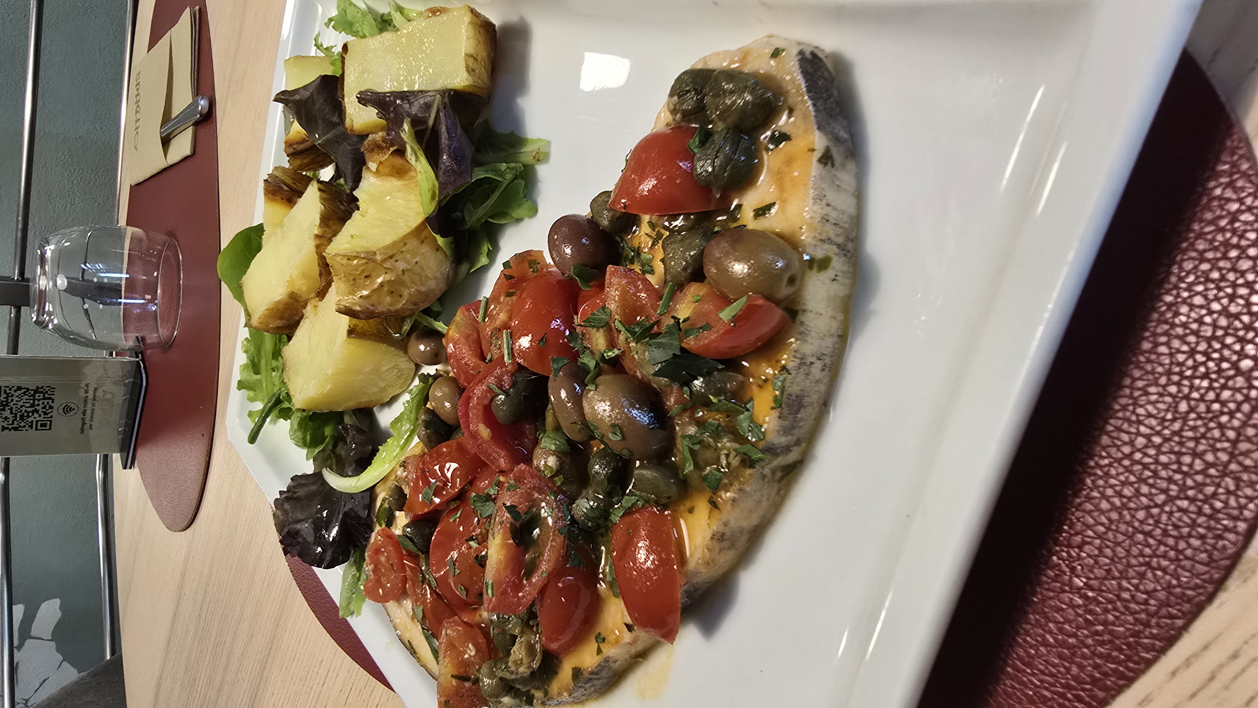 The whole is completed by a generous handful of olives and an enveloping scent of fresh oregano, which enhances every bite. Served with a side of baked vegetables or baked potatoes, this dish is not just a meal but a sensory journey between land and sea, perfect for those looking for an authentic culinary experience.
